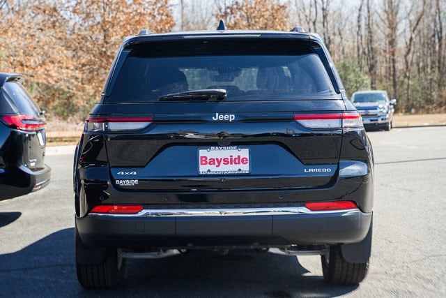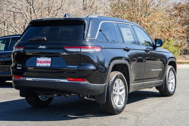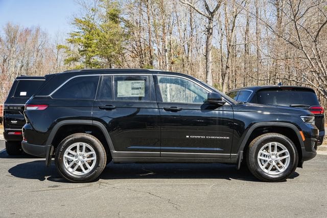 The 2025 Jeep Grand Cherokee Laredo X is a capable 4x4 SUV powered by a 3.6L V6 engine with 8-speed automatic transmission, featuring Quadra-Trac I 4WD, adaptive cruise control, full-speed forward-collision warning, and advanced safety systems for driver confidence. Its interior includes cloth seats, dual-zone climate control, Uconnect 5 with an 8.4-inch touchscreen, Apple CarPlay, Android Auto, and seating for five with a 60/40-split rear seat. Exterior enhancements include an available power sunroof, fully painted 18-inch aluminum wheels, LED headlamps, and MOPAR finishing and splash-guard packages for added protection and style.