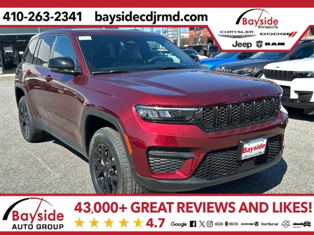 Online prices include all available rebates; however, not all customers qualify for all rebates. Bayside has been serving our community since 1989. We will work with each customer to get to the very best price available to them. Our promise -- Simple, Honest, Fair. We have a strong commitment to create long term relationships with our customers. We believe these relationships are built outside of the dealerships and fostered through community activity. Bayside annually awards Teacher of the Year AND Education Support Person of the Year with a new vehicle. We are pleased to be able to give back to our educators who are making a positive impact in the lives of our children. Our involvement in the End Hunger Program directly impacts local families and supplies nearly 2 MILLION pounds of food, household goods, and resources to thousands who are in need. We offer special discounts to our Military and 1st Responder customers -- who are selfless in their giving to us. Bayside for Life is what sets the Bayside Auto Group apart from other dealerships. As a Bayside for Life member you will receive a 7 day or 3,000 mile exchange policy on your new vehicle and a lifetime engine guarantee, as long as you own your vehicle. Each vehicle purchased includes oil and filter changes and tire rotations for 1 year or 10,000 miles, and a 120 multi-point safety inspection, at no cost to you. Membership entitles you to receive points and benefits that you may use toward service costs and $250 future trade-in bonus toward your next Bayside purchase. If you donât believe us -- listen to what our customers have to say. Bayside has a Google rating of 4.6 from over 36,000 customers. We do the right thing the 1st time. Every day our sales representatives, financial experts, and certified technicians work toward the same goal - to provide you with the best customer service experience and make sure you are 100% satisfied with your experience at our dealership. Sale price includes all applicable rebates. Freight charge is not included. Taxes, tags and doc fee extra. Not all customers will qualify for all rebates. See dealer for details. Price includes: $1000 - 2025 National Grand Cherokee Loyalty Retail Bonus Cash . Exp. 11/03/2025 $1000 - 2025 Northeast BC SFS Retail Bonus Cash . Exp. 11/03/2025 $1000 - Driveability / Automobility Program. Exp. 01/05/2026 $1750 - 2025 National Retail Bonus Cash . Exp. 11/03/2025 $2000 - 2025 National Overaged Select Inventory Bonus Cash. Exp. 11/03/2025 $2000 - 2025 National SFS Lease Loyalty Bonus Cash. Exp. 11/03/2025 $500 - 2025 National 2025 Military Bonus Cash. Exp. 01/05/2026 $500 - 2025 National Jeep Monopoly Money Bonus Cash . Exp. 11/03/2025