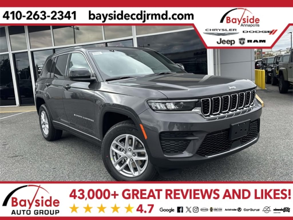 Bayside carries a full model lineup of Chrysler, Dodge, Jeep and RAM vehicles including the Jeep Grand Cherokee, Jeep Wrangler, Dodge Durango, Pacifica and RAM 1500. We invite you to shop around and compare our prices with other Chrysler, Dodge, Jeep and RAM dealerships in the Annapolis area. Let us know what you find, and let us give you our best price on the same model. We strive to earn your business and want you to be a Bayside Chrysler Dodge Jeep Ram customer for life! Visit us on the web at www.baysidecdjrmd.com. *Sale price includes all applicable rebates. Freight charge is not included. Taxes, tags and doc fee extra. Not all customers will qualify for all rebates. See dealer for details. Sale price includes all applicable rebates. Freight charge is not included. Taxes, tags and doc fee extra. Not all customers will qualify for all rebates. See dealer for details. Price includes: $1000 - 2025 National Grand Cherokee Loyalty Retail Bonus Cash . Exp. 12/01/2025 $1000 - Driveability / Automobility Program. Exp. 01/05/2026 $2000 - 2025 National SFS Lease Loyalty Bonus Cash. Exp. 12/01/2025 $2250 - 2025 National Retail Bonus Cash . Exp. 12/01/2025 $500 - 2025 National 2025 Military Bonus Cash. Exp. 01/05/2026