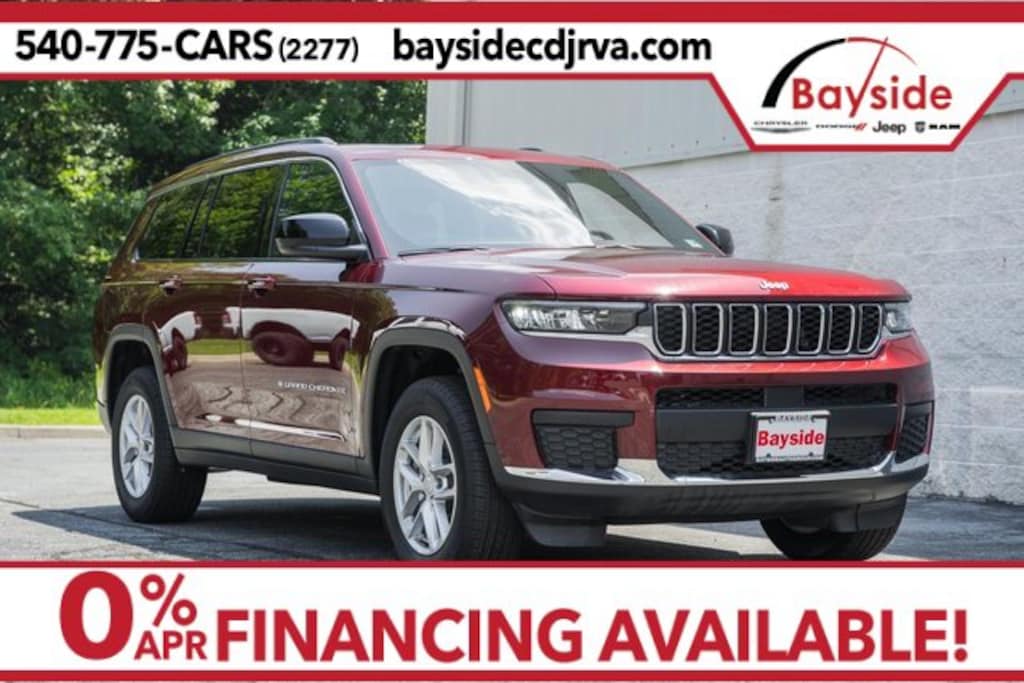 4WD 8-Speed Automatic 3.6L V6 24V VVT 3rd row seats: split-bench, 6 Speakers, Laredo X, Power driver seat, Power Sunroof, Quick Order Package 23D Laredo X, Reclining 3rd row seat, Wheels: 18" x 8.0" Fully Painted Aluminum. Some customers may not qualify for all rebates listed, see dealer for details. Price includes: $2000 - 2025 National Overaged Select Inventory Bonus Cash. Exp. 09/30/2025 $2500 - 2025 National Retail Bonus Cash . Exp. 09/30/2025 Price includes a $1,000 rebate from Bayside CDJR in order to finance with Stellantis or another affiliated bank. Should you pay cash or finance with your own bank the rebate will be added back to the price. Price includes a $1,000 retail trade assistance. Trade must be under 80.000 miles and within 5 model years of 2024 to qualify for this rebate.
