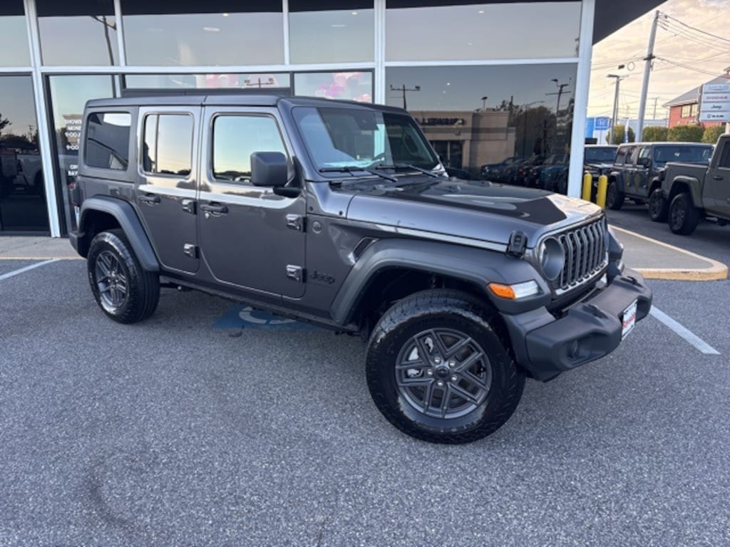 2025 Jeep Wrangler Sport S Sport S 2-Door Passive Entry, Front Door Locks, Advanced Brake Assist, Air Conditioning w/Auto Temperature Control, Air Filtering, Auto High Beam Headlamp Control, Automatic Headlamps, Blind Spot & Cross Path Detection, Cluster 7.0" TFT Color Display, Convenience Group, Corning Gorilla Glass, Deep Tint Sunscreen Windows, Emergency/Assistance Call, Enhanced Adaptive Cruise Control, Full Speed Forward Collision Warning Plus, Heated Front Seats, Heated Steering Wheel, Injection Molded Black Rear Bumper, LED Taillamps, ParkSense Rear Park Assist System, Power Heated Mirrors, Premium Wrapped Steering Wheel, Quick Order Package 24S Sport S, Remote Start System, Safety Group, Security Alarm, Sun Visors w/Illuminated Vanity Mirrors, Universal Garage Door Opener, Wheels: 17" x 7.5" Gray.