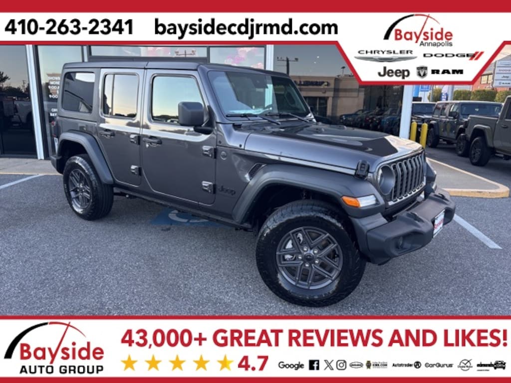 Bayside carries a full model lineup of Chrysler, Dodge, Jeep and RAM vehicles including the Jeep Grand Cherokee, Jeep Wrangler, Dodge Durango, Pacifica and RAM 1500. We invite you to shop around and compare our prices with other Chrysler, Dodge, Jeep and RAM dealerships in the Annapolis area. Let us know what you find, and let us give you our best price on the same model. We strive to earn your business and want you to be a Bayside Chrysler Dodge Jeep Ram customer for life! Visit us on the web at www.baysidecdjrmd.com. *Sale price includes all applicable rebates. Freight charge is not included. Taxes, tags and doc fee extra. Not all customers will qualify for all rebates. See dealer for details. Sale price includes all applicable rebates. Freight charge is not included. Taxes, tags and doc fee extra. Not all customers will qualify for all rebates. See dealer for details. Price includes: $1000 - Driveability / Automobility Program. Exp. 01/05/2026 $1500 - 2025 National Bonus Cash . Exp. 12/01/2025 $2000 - 2025 National Holiday Select Inventory Bonus Cash. Exp. 12/01/2025 $2500 - 2025 National Retail Bonus Cash . Exp. 12/01/2025 $500 - 2025 National 2025 Military Bonus Cash. Exp. 01/05/2026