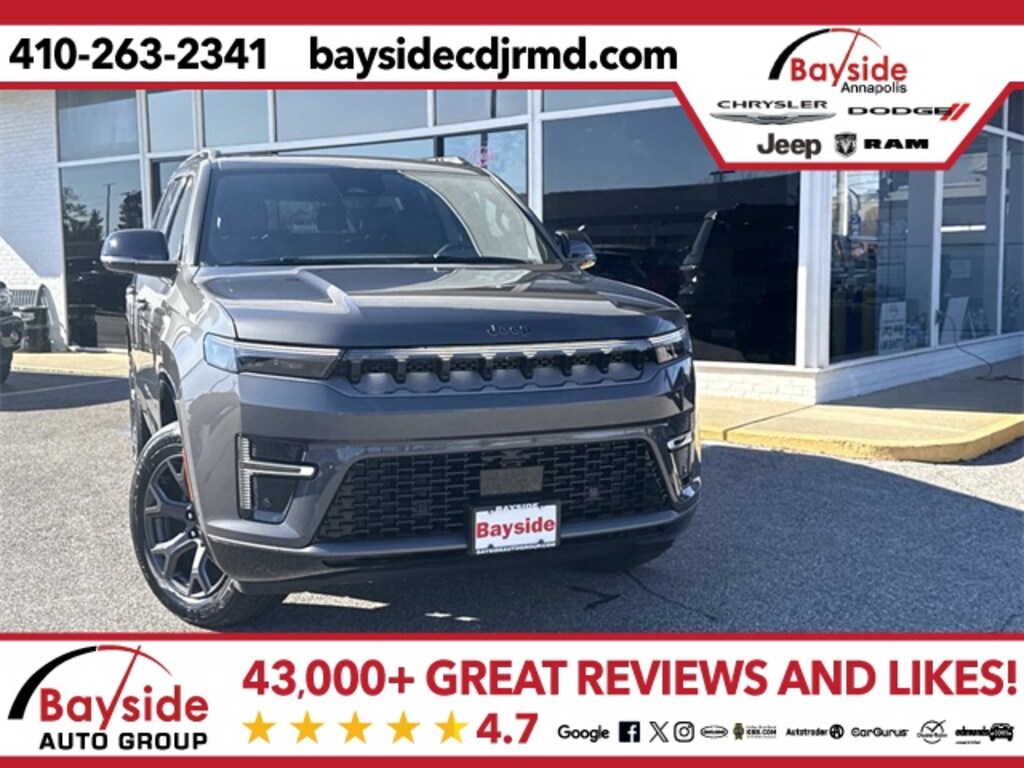 Bayside carries a full model lineup of Chrysler, Dodge, Jeep and RAM vehicles including the Jeep Grand Cherokee, Jeep Wrangler, Dodge Durango, Pacifica and RAM 1500. We invite you to shop around and compare our prices with other Chrysler, Dodge, Jeep and RAM dealerships in the Annapolis area. Let us know what you find, and let us give you our best price on the same model. We strive to earn your business and want you to be a Bayside Chrysler Dodge Jeep Ram customer for life! Visit us on the web at www.baysidecdjrmd.com. *Sale price includes all applicable rebates. Freight charge is not included. Taxes, tags and doc fee extra. Not all customers will qualify for all rebates. See dealer for details. Sale price includes all applicable rebates. Freight charge is not included. Taxes, tags and doc fee extra. Not all customers will qualify for all rebates. See dealer for details. Price includes: $1500 - 2026 National Stellantis Loyalty Retail Bonus Cash . Exp. 02/02/2026 $500 - 2026 National 2026 Military Bonus Cash . Exp. 01/04/2027