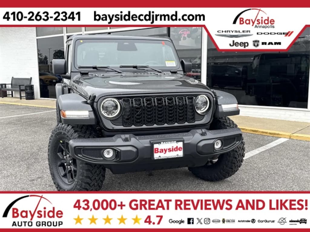 Bayside carries a full model lineup of Chrysler, Dodge, Jeep and RAM vehicles including the Jeep Grand Cherokee, Jeep Wrangler, Dodge Durango, Pacifica and RAM 1500. We invite you to shop around and compare our prices with other Chrysler, Dodge, Jeep and RAM dealerships in the Annapolis area. Let us know what you find, and let us give you our best price on the same model. We strive to earn your business and want you to be a Bayside Chrysler Dodge Jeep Ram customer for life! Visit us on the web at www.baysidecdjrmd.com. *Sale price includes all applicable rebates. Freight charge is not included. Taxes, tags and doc fee extra. Not all customers will qualify for all rebates. See dealer for details. Sale price includes all applicable rebates. Freight charge is not included. Taxes, tags and doc fee extra. Not all customers will qualify for all rebates. See dealer for details. Price includes: $1500 - 2026 National Stellantis Loyalty Retail Bonus Cash . Exp. 02/02/2026
