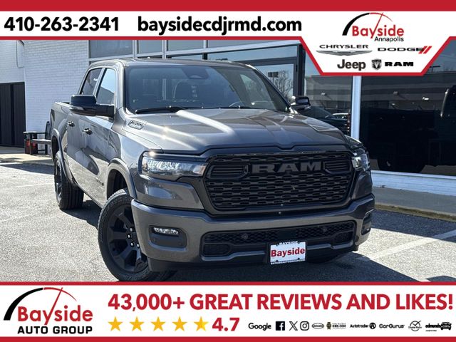 2025 Ram 1500 Big Horn/Lone Star Big Horn/Lone Star 115V Auxiliary Power Outlet, 115V Auxiliary Rear Power Outlet, 12" Touchscreen Display, 2nd Row In Floor Storage Bins, 3 Rear Seat Head Restraints, 4 Way Front Headrests, 400W Inverter, 4G LTE Wi-Fi Hot Spot, 9 Amplified Speakers w/Subwoofer, Accent Color Door Handles, Accent Color Premium Power Mirrors, Accent Color Tailgate Handle, Air Conditioning ATC w/Dual Zone Control, Anti-Spin Differential Rear Axle, Apple CarPlay, Auto Power-Folding Mirrors, Auto-Dimming Exterior Driver Mirror, Auto-Dimming Rear-View Mirror, Big Horn Level 2 Equipment Group, Black Exterior Mirrors, Black Exterior Truck Badging, Black Headlamp Bezels, Black Interior Accents, Black Painted Exterior Mirrors Caps, Black Premium Power Mirrors, Black Tail Lamp Bezels, Body Color Front Bumper, Body Color Rear Bumper w/Step Pads, Bucket Seats, Cluster 7.0" TFT Color Display, Configurable Drive Mode, Connected Travel & Traffic Services, Connectivity - US/Canada, Convex Wide-Angle Exterior Mirror Insert, Deluxe Cloth Bucket Seats, Exterior Mirrors Courtesy Lamps, Exterior Mirrors w/Heating Element, Exterior Mirrors w/Supplemental Signals, Front Seat Back Map Pockets, Full Length Floor Console, Glove Box Lamp, Google Android Auto, GPS Antenna Input, GPS Navigation, Grille Black Surround Black Mesh, HD Radio, Heated Front Seats, Heated Steering Wheel, Integrated Voice Command w/Bluetooth, Leather Wrapped Steering Wheel, LED Dome Lamp w/On/Off Switch, LED Footwell Lighting, Manual Adjust 4-Way Front Passenger Seat, Media Hub w/2 Charge Only USBs, Night Edition, Overhead LED Lamps, Power 2-Way Driver Lumbar Adjust, Power Adjust 8-Way Driver Seat, Power Adjustable Pedals, Premium Overhead Console, Quick Order Package 21Z Big Horn, Radio: Uconnect 5 Nav w/12.0" Display, RAM Grille Badge - Black, Rear 60/40 Folding Seat, Rear Center Armrest, Rear Power Sliding Window, Rear Window Defroster, Remote Tailgate Release, Security Alarm, SiriusXM w/360L, Steering Wheel Mounted Audio Controls, Sun Visors w/Illuminated Vanity Mirrors, Universal Garage Door Opener, USB Host Flip, Wheels: 20" x 9.0" Aluminum Painted Clad.