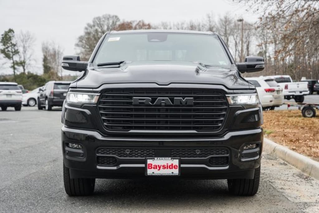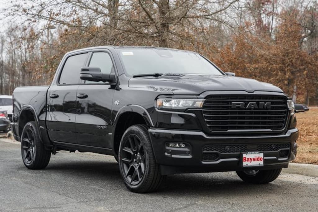 The 2026 Ram 1500 Laramie Crew Cab 4x4 delivers premium power and capability with its 5.7L HEMI V8 eTorque engine, 8-speed automatic transmission, and upgraded 3.92 rear axle ratio. This Night Edition model adds 22-inch forged wheels, a sport performance hood, body-color bumpers, Harman Kardon premium audio, a 14.4-inch Uconnect touchscreen, and a full suite of advanced safety features including adaptive cruise, lane management, blind-spot detection, and front/rear ParkSense. Inside, it offers leather-trimmed heated and ventilated front seats, heated second-row seats, driver memory settings, an interactive passenger display, and thoughtful storage throughout for a luxury-level driving experience.