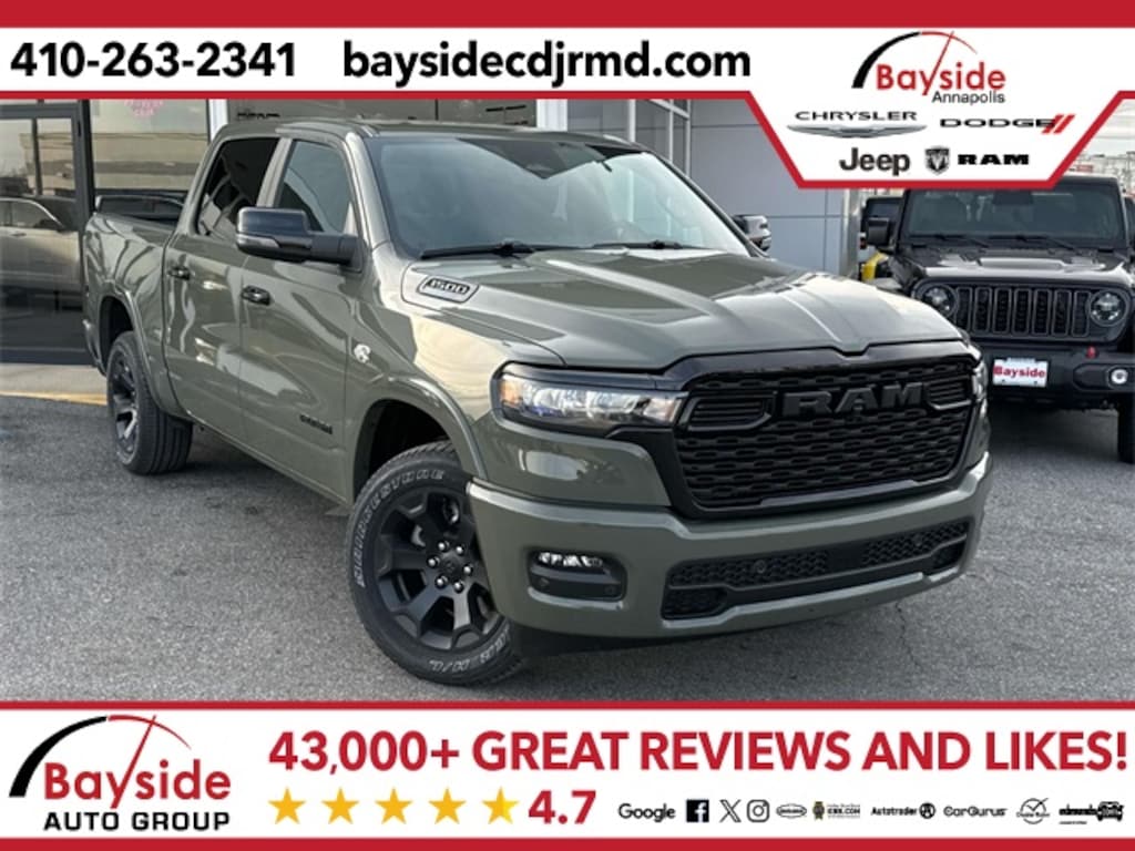 2026 Ram 1500 Big Horn/Lone Star Big Horn/Lone Star 115V Auxiliary Power Outlet, 115V Auxiliary Rear Power Outlet, 12" Touchscreen Display, 2nd Row in Floor Storage Bins, 3 Rear Seat Head Restraints, 4 Way Front Headrests, 400W Inverter, 4G LTE Wi-Fi Hot Spot, 9 Amplified Speakers with Subwoofer, Accent Color Door Handles, Accent Color Premium Power Mirrors, Accent Color Tailgate Handle, Air Conditioning ATC with Dual Zone Control, Anti-Spin Differential Rear Axle, Apple CarPlay, Auto Power-Folding Mirrors, Auto-Dimming Exterior Driver Mirror, Auto-Dimming Rear-View Mirror, Bed Utility Group, Big Horn Level 2 Equipment Group, Black Exterior Mirrors, Black Exterior Truck Badging, Black Headlamp Bezels, Black Interior Accents, Black Painted Exterior Mirrors Caps, Black Premium Power Mirrors, Black Tail Lamp Bezels, Body Color Fender Flares, Body Color Front Bumper, Body Color Rear Bumper with Step Pads, Bucket Seats, Center Console Parts Module, Cluster 7.0" TFT Color Display, Configurable Drive Mode, Connected Travel and Traffic Services, Connectivity - US/Canada, Convex Wide-Angle Exterior Mirror Insert, Deluxe Cloth Bucket Seats, Disassociated Touchscreen Display, Dual Exhaust with Black Tips, Exterior 115V AC Outlet, Exterior Mirrors Courtesy Lamps, Exterior Mirrors with Heating Element, Exterior Mirrors with Supplemental Signals, Front Seat Back Map Pockets, Full Length Floor Console, Global Telematics Box Module, Glove Box Lamp, Google Android Auto, GPS Antenna Input, GPS Navigation, Grille Black Surround Black Mesh, HD Radio, Heated Front Seats, Heated Steering Wheel, Integrated Center Stack Radio, Integrated Voice Command with Bluetooth, Leather Wrapped Steering Wheel, LED Dome Lamp with on/Off Switch, LED Footwell Lighting, Manual Adjust 4-Way Front Passenger Seat, Media Hub with 2 Charge Only USBs, MOPAR 4 Adjustable Cargo Tie-Down Hooks, MOPAR Spray in Bedliner, Night Edition, Overhead LED Lamps, Pick-Up Box Lighting, Power 2-Way Driver Lumbar Adjust, Power Adjust 8-Way Driver Seat, Power Adjustable Pedals, Premium Overhead Console, Quick Order Package 27Z Big Horn, Radio: Uconnect 5 Navigation with 12.0" Display, RAM Grille Badge - Black, Rear 60/40 Folding Seat, Rear Center Armrest, Rear Power Sliding Window, Rear Window Defroster, Remote Tailgate Release, Security Alarm, SiriusXM Radio Service, SiriusXM with 360L, Steering Wheel Mounted Audio Controls, Sun Visors with Illuminated Vanity Mirrors, Universal Garage Door Opener, USB Host Flip, Wheels: 20" x 9.0" Aluminum Painted Clad, Wheels: 20" x 9" Aluminum Chrome Clad.