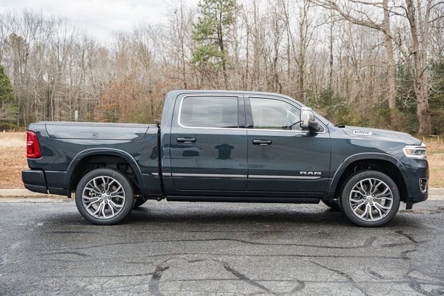 The 2026 RAM 1500 Tungsten Crew Cab 4x4 combines a 3.0L I6 Hurricane HO Twin Turbo engine with an 8-speed automatic transmission for a smooth, powerful drive, enhanced by advanced towing technologies and a 33-gallon fuel tank. Its luxurious interior boasts premium leather seats with massaging and 20-way adjustability, a dual-pane panoramic sunroof, a 14.4-inch Uconnect 5 touchscreen, a 12-inch digital cluster, head-up display, and a 23-speaker Klipsch sound system for an immersive experience. The exterior impresses with 22-inch polished wheels, LED projector headlamps, premium fog lamps, body-color accents, and active safety features including adaptive cruise control, evasive steering assist, and full-speed forward-collision warning plus.