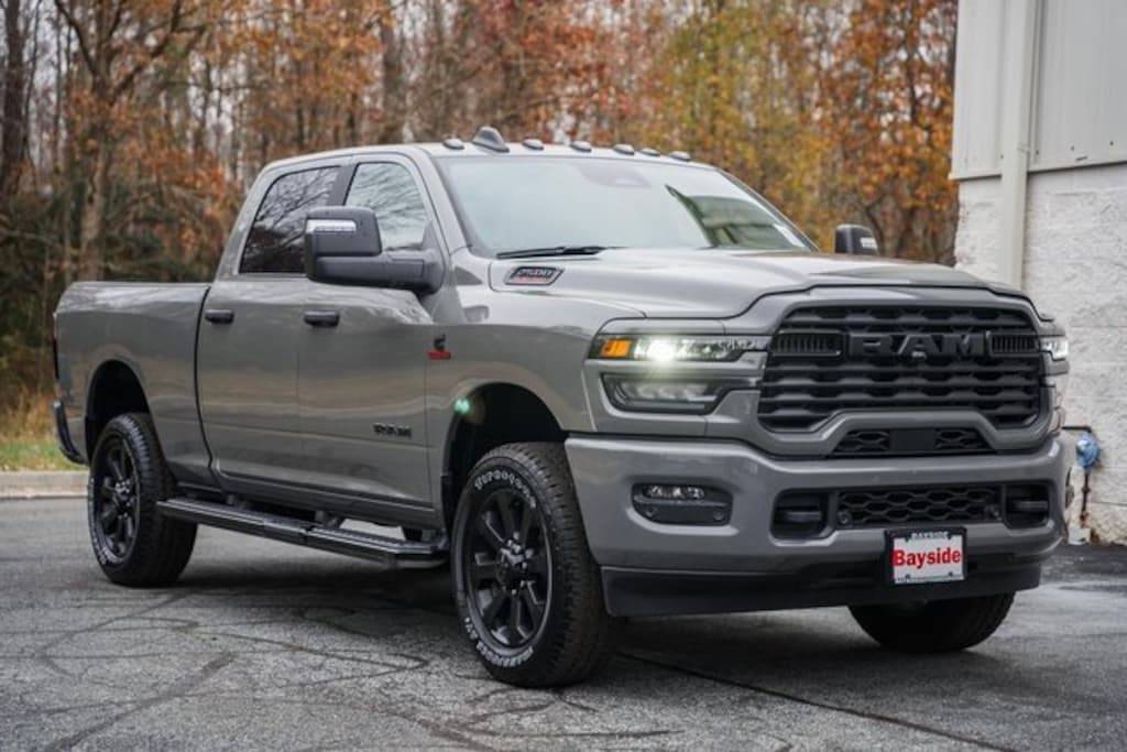 The 2026 Ram 2500 Big Horn Crew Cab 4x4 in Ceramic Gray Clear-Coat delivers heavy-duty capability with refined style and comfort. Powered by the available High-Output 6.7L Cummins Turbo Diesel paired with an 8-speed HD automatic, its equipped for serious towing and reliability while offering modern safety tech like Adaptive Cruise Control, Forward-Collision Warning, and full ParkSense systems. Inside, premium cloth bucket seats, an upgraded Uconnect 5 system with a 12-inch display (via Level 1 Plus), heated features, Alpine audio, and added convenience upgrades create a comfortable and highly functional cabin ready for work or everyday use.