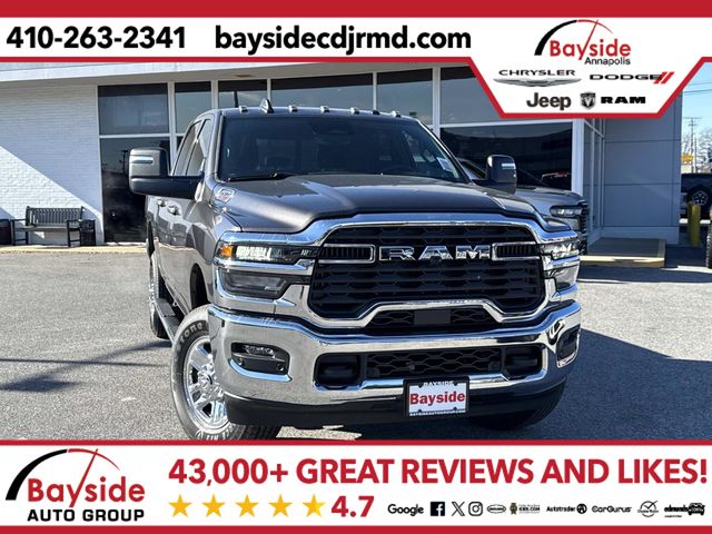 2026 Ram 2500 Tradesman Tradesman 115-Volt Auxiliary Front Power Outlet, 12" Touchscreen Display, 2 Way Rear Headrest Seat, 4 Way Front Headrests, 40/20/40 Split Bench Seat, 400W Inverter, 4G LTE Wi-Fi Hot Spot, Air Conditioning ATC with Dual Zone Control, Alexa Built-in, Anti-Spin Differential Rear Axle, Apple CarPlay, Auto-Dimming Rear-View Mirror, Bed Utility Group, Black Exterior Mirrors, Bright Front Bumper, Bright Rear Bumper, Carpet Floor Covering, Center Hub, Chrome Grille Surround, Cloth 40/20/40 Bench Seat, Connected Travel and Traffic Services, Connectivity - US/Canada, Disassociated Touchscreen Display, Emergency Vehicle Alert System (EVAS), Exterior 115V AC Outlet, Exterior Mirrors Courtesy Lamps, Exterior Mirrors with Heating Element, Exterior Mirrors with Supplemental Signals, For Details, Visit DriveUconnect.com, For More Info, Call 800-643-2112, Front and Rear Floor Mats, Front Armrest with Cupholders, Global Telematics Box Module, Google Android Auto, GPS Antenna Input, GPS Navigation, HD Radio, Integrated Voice Command with Bluetooth, LED Bed Lighting, Manual Adjust 4-Way Driver Seat, Manual Adjust 4-Way Front Passenger Seat, Manual Folding Exterior Mirrors, Manual Telescoping Mirrors, Matte Black Mesh Grille with Chrome, Mirror Running Lights, Mopar Black Tubular Side Steps, MOPAR Deployable Bed Step, MOPAR Spray in Bedliner, Off-Road Info Pages, ParkSense Front/Rear Park Assist System, Power Adjust Mirrors, Power Heated Folding Telescope Mirrors, Power-Adjustable Convex Aux Mirrors, Quick Order Package 2UA Tradesman, Radio: Uconnect 5 Navigation with 12.0" Display, Rear Folding Seat, Rear Power Sliding Window, Remote USB Port - Charge Only, Selectable Tire Fill Alert, SiriusXM Radio Service, SiriusXM with 360L, Storage Tray, Tinted Acoustic Windshield Glass, Tradesman Level 2 Equipment Group, Trailer Tow Pages, Wheels: 18" x 8.0" Steel Chrome Clad.