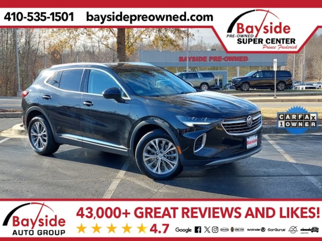 Experience comfort, style, and reliability with this 2022 Buick Envision Preferred. With one previous owner and a Clean Carfax, this SUV has been well-maintained and is ready to provide a smooth, worry-free driving experience. Powered by a responsive engine and paired with a refined suspension, the Envision offers a quiet, comfortable ride ideal for commuting, errands, or weekend adventures. Inside, the Preferred trim features a premium cabin with leatherette seating, touchscreen infotainment with Apple CarPlay/Android Auto, dual-zone climate control, and a spacious interior with versatile cargo space. Reliable, stylish, and well-equipped, this Buick Envision Preferred is a smart choice for anyone seeking a modern, dependable midsize SUV. 24/31 City/Highway MPG